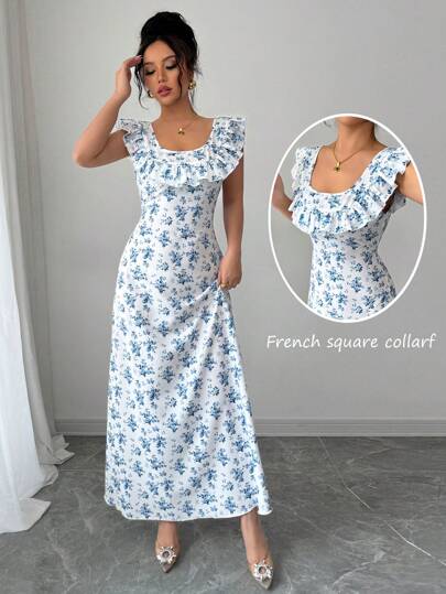 Chiquease Women's U-Neck Ruffle Hem Sleeveless A-Line Dress - Multicolor - View 1