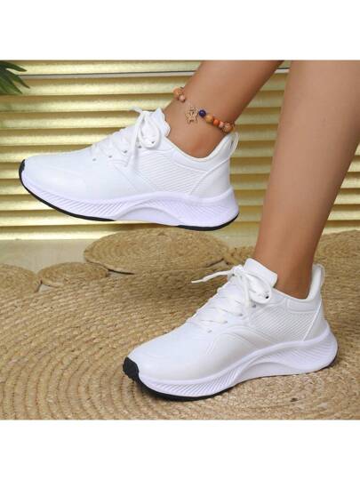 Women 2024 Spring Casual Sneakers, White Fashionable Vulcanized Shoes - White - View 1
