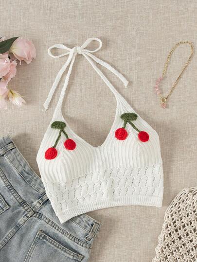 Swim Mod Women Beach Cover-Up Halter White Cropped Knit Top Summer - White - View 1