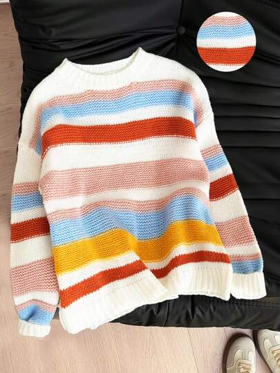 Muchica Women Casual Warm Striped Pattern Crew Neck Sweater, Suitable For Autumn And Winter - Multicolor - View 1