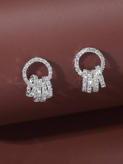 Women Elegant Rhinestone Decor Earrings - Silver - View 1