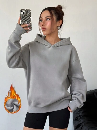 Women Essential Long Sleeve Casual Pullover Drop Shoulder Oversized Hoodie - Grey - View 3