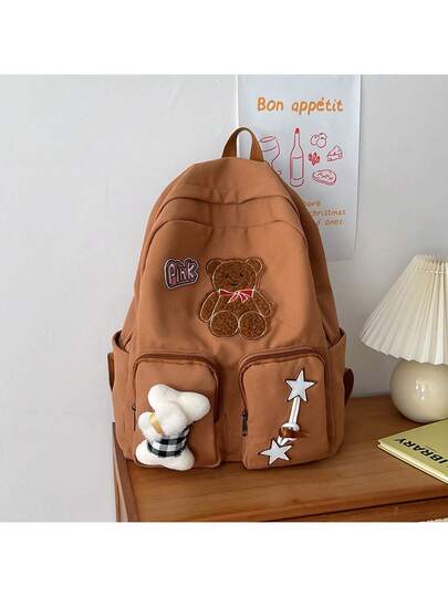 Women Fashion Backpacks, School Backpack - Brown - View 1
