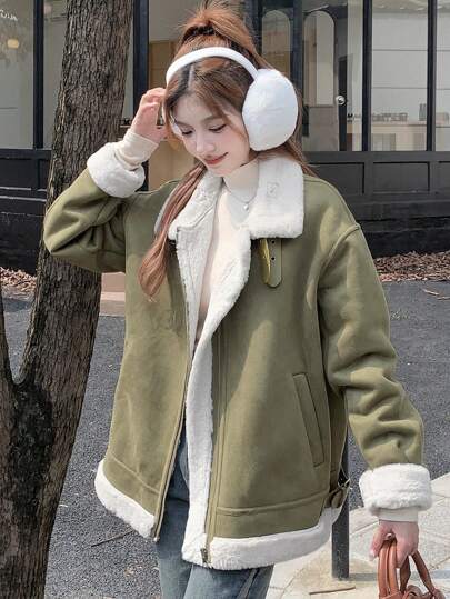 DAZY Women Faux Suede Thermal Lined Regular Jacket,Thermal Lined - Green - View 1