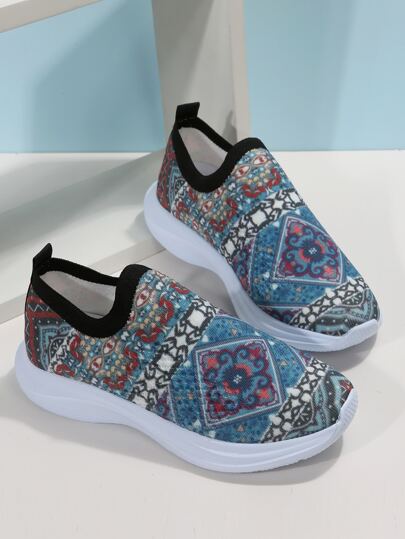 Women Flower Pattern Slip On Shoes, Sporty Outdoor Fabric Running Shoes - Multicolor - View 1