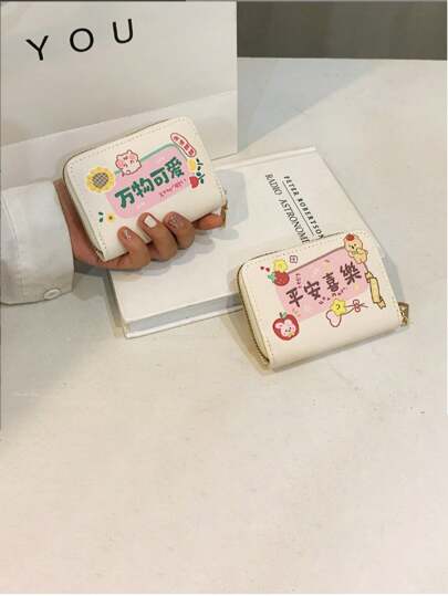 Women & Girls Cute Small Wallet Card Holder, Large Capacity Printed Girl Coin Purse With Chain - Multicolor - View 1