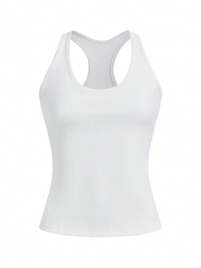 Easithlete Women High Elasticity Breathable Sports Gym Tank Top With Inner Lining, Built-In Bra Cups, Round Neckline And Open Back Design - White - View 1