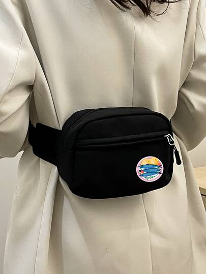 Women Nylon Solid Color Stylish & Versatile Sardine Print Minimalist Design Chest Bag/Coin Purse/Phone Bag - Black - View 1