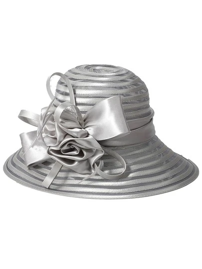 HIMESPORT Gray Women Floral  Church Floppy Wide Brim Cloche Bowler Hats Wedding Kentucky Sun Hat - Grey - View 1