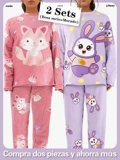 Women Pajama Sets - 5008Rosa sucio‌+Morado - View 1