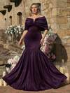 Glamrae Plus Size Elegant Romantic Sexy Fashion Deep Purple Satin Elastic Fabric Mermaid Tail Hem Backless Dress, Suitable For Festival, Holiday, Birthday Party, Wedding, Formal Dinner Off Shoulder Formal Dress Purple Women Evening Dress Plum Dress Off Shoulder Dress Plus Size Purple Dress Violet Dress