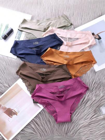 Women's 6pcs Ice Silk Seamless Lace Sexy Sheer Crotch Triangle Panties - Multicolor - View 6