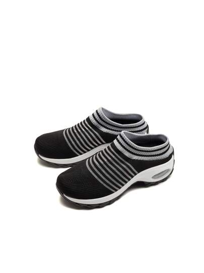 Women's Half-Slippers, Sporty Knitted Air Cushion Socks With Shock Absorption, Slip On Shoes For Dancing And Casual Outings - Black and White - View 1