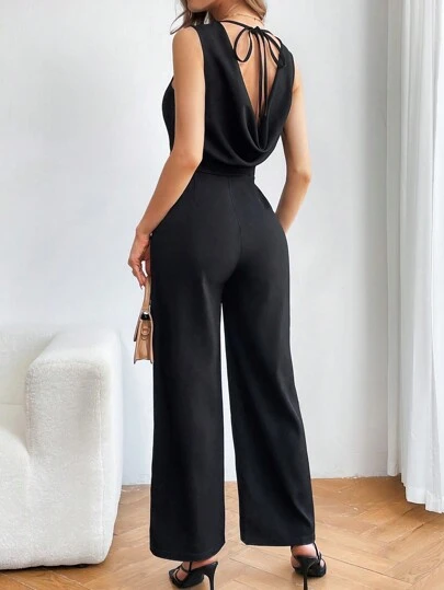 SHEIN Clasi Women's Sleeveless Backless Square Neck Jumpsuit - Black - View 1