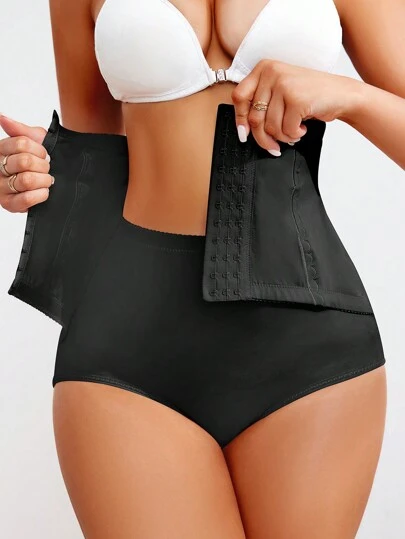 Women Solid  Hook And Eye Shapewear Panty - Black - View 1