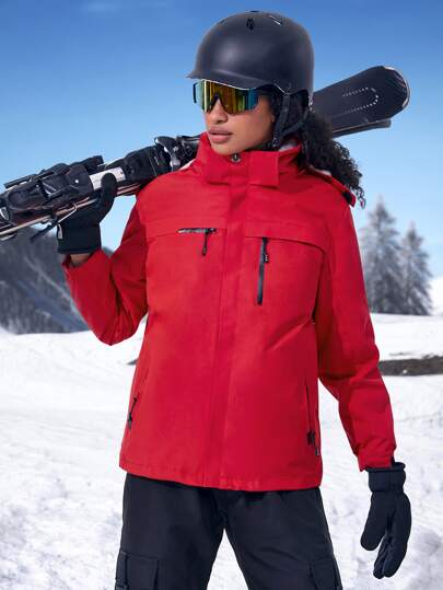 Teddy Lined Hooded Sports Jacket - Red - View 1