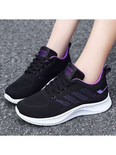 Women's Breathable Mesh Sports Shoes, Casual Lace-Up Outdoor Shoes, Comfortable Low-Top Athletic Sneakers - Black - View 1
