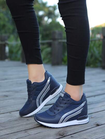 Women's Breathable Wedge Heel Platform Sneakers - Blue - View 1