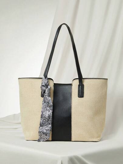 Women's Casual Canvas Splicing Zipper Shoulder Bag With Large Capacity For Everyday Use Handbags Winter Gifts - Black - View 1