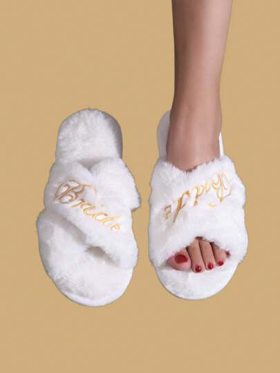 Women's Cross Strap Plush & Linen Slippers, Light Weight House Slippers, Warm And Cozy, Suitable For Spring, Summer, Autumn, And Winter, Pink,Furry Shoes,Fluffy Slippers - White - View 1