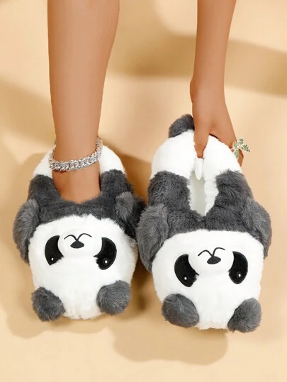Women's Cute Cartoon Panda House Slippers, Indoor Non-Slip Floor Shoes, Warm Rubber Sole Maternity Slippers, Couple Slippers For Winter,Furry Shoes,Funny Slippers,Fluffy Slippers - Black and White - View 1