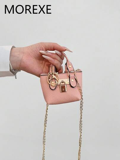 Women's Fashion Mini Handbag, New Style Lightweight Compact Mini Tote Bag With Metal Chain Strap , Pink - Pink - View 1