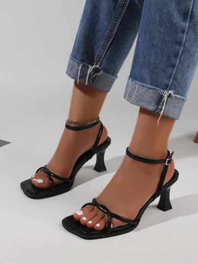 Women's Fashionable And Comfortable Black Band High Heel Open Toe Strappy Sandals,Kitten Heels - Black - View 1