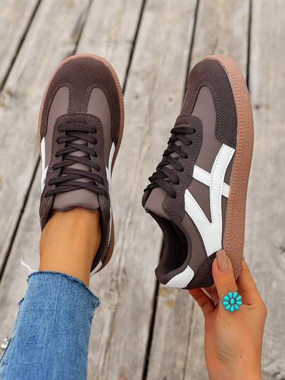 Women's Fashionable Casual Lace-Up Soft Bottom Sneakers, Lightweight And Versatile, Suitable For All Seasons And People - Coffee - View 3