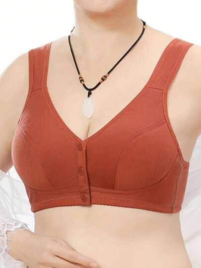 Women's Front Closure Wireless Comfortable Stretch Tank Bra, Neon Orange - Burnt Orange - View 1