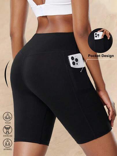 Women's High Waist Shorts With Pockets - Tight Fitting Fitness Yoga Cycling Shorts For Summer, Butt Lifting Slim Fit Workout Running Shorts, Suitable For Outdoor Fitness And Daily Wear - Black - View 1