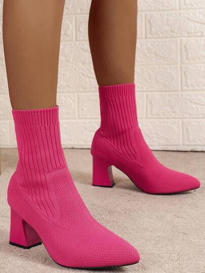 Women's Black Mid-Calf Boots, New 2023 Fashion Chunky Heel Sexy Boots For Autumn Winter, Outdoor Combat Boots Slimming And Tall, Halloween Ankle Boots, Oktoberfest Classic Boots, Discounted Platform Boots, Comfortable And Stylish Boots For Women - Hot Pink - View 1