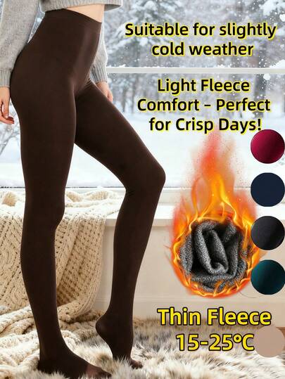 Women's Light Fleece Tights - Thin Thermal Lined Pantyhose For 15-25℃ Slightly Cold Crisp Days, High Waist Leggings With Multi-Colors (Coffee Brown, Black, Navy, Burgundy, Dark Green, Skin Tone) For Women - Multicolor - View 1