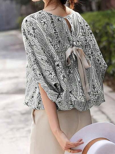 Women's Loose Fit Geometric Print Pattern Shirt - Multicolor - View 5