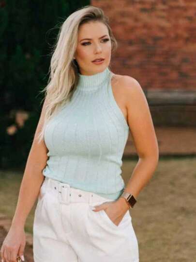Women's Modal Tricot Ribbed Tank Top With Boat Neck | Summer Modal Tricot Tank Top - Baby Blue - View 11