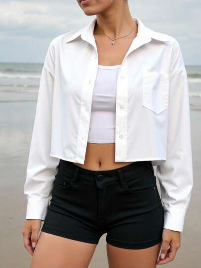 Women's Outdoor Short Sleeve Shirt, Pocket Cardigan Button Design, Suitable For Outdoor Sports, Leisure And Vacation - White - View 1