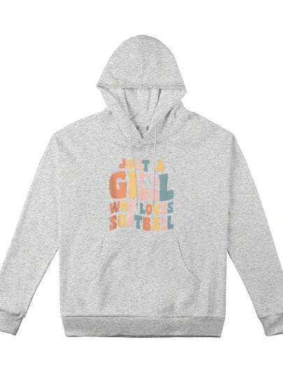 Women's Plus-Size Sweatshirt, Just A Girl Who Loves Softball Girlscasual Style Sweatshirt, A Must-Have For Daily Travel, Suitable For All Seasons. - Grey - View 1