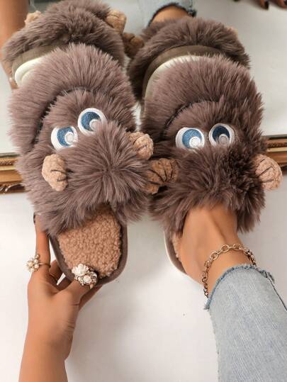 Women's Plush Criss-Cross Platform Slide Slippers, Soft & Comfortable Open Toe Non-Slip Indoor Slippers, House Shoes - Chocolate Brown - View 1