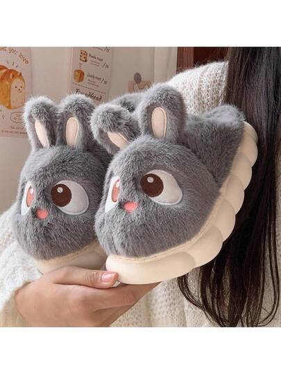 Women's Plush Slippers, Warm And Comfortable, Suitable For Casual Wear In Autumn/Winter, New 2025 Elegant Ladies' House Shoes, Low Heel, Simple Round Toe Design - Light Grey - View 1