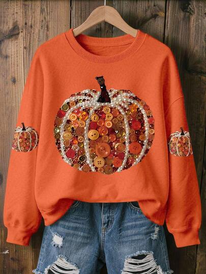 EMERY ROSE Áo thun dài tay cổ tròn in hình quả bí ngô nhiều màu sắc thoải mái cho nữ, quà tặng Halloween