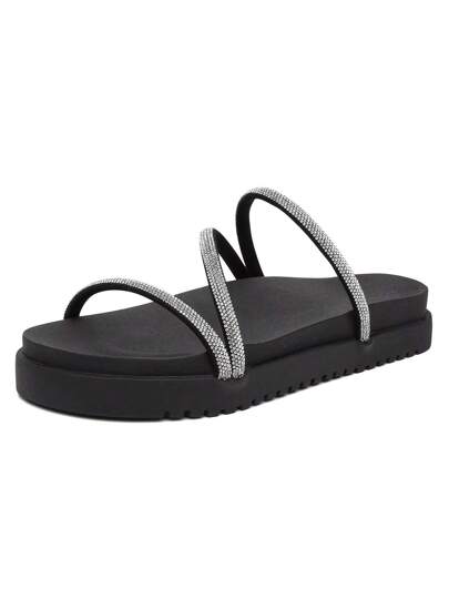 Women's Rhinestone  Flat Sandals Super Comfortable - Black - View 1