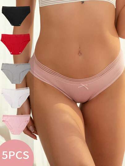 Women's Sexy Breathable Ribbed Triangle Panties, 5pcs/pack - Multicolor - View 1