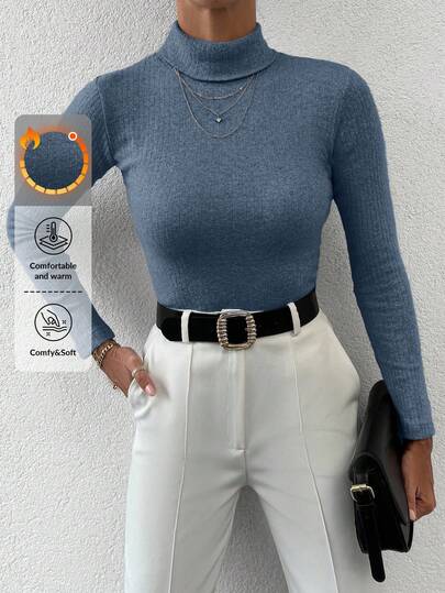 EURMUSE Women's Solid Color Turtleneck Long Sleeve Fitted Casual Pullover Sweater,Jumper,Cream Jumper,Jumpers,Black Jumper,Womens Jumper,White Jumper,Women's Jumper,Women's Jumpers,Winter Clothes - Navy Blue - View 1