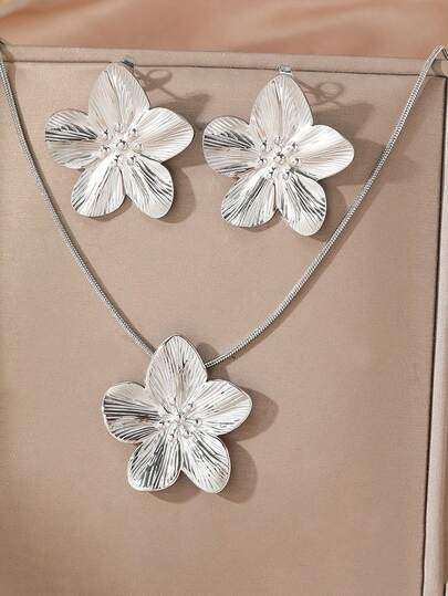 Bộ vòng cổ và hoa tai bằng thép không gỉ dành cho nữ, trang sức mạ vàng, quà tặng đầm dự tiệc