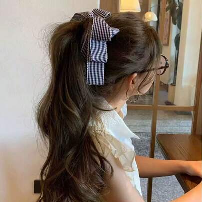 Kẹp tóc nơ kẻ caro ngọt ngào dành cho nữ, kẹp cài tóc cao cấp kiểu chuối, phụ kiện đội đầu trang nhã.