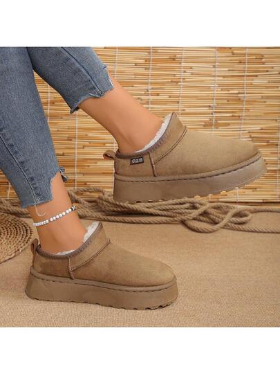 Women's Thick Sole Anti-Slip Snow Boots, Thermal Lined Winter New Thick Warm Winter Shoes, Short Tube Snow Slip-Resistant Puffy Winter Shoes, Thick Bottom Furry Shoes - Khaki - View 1