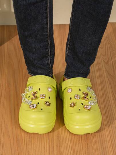 Women's Thick-Sole Breathable Slip On Sandals, New EVA One-Piece Outdoor Platform Versatile Shoes, Anti-Slip Shock-Absorbing, DIY Fashionable Comfortable Hollow Slippers For Casual Wear, Spring/Summer - Green - View 1