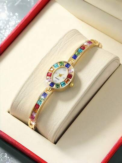 Women's Top Brand Luxury Minimalist Mixed Scale Pointer Quartz Watch Bracelet, Valentine's Day Gift (No Box) - Gold - View 1