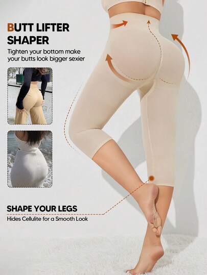 Women's Tummy Control Body Shaper High Waisted Butt Lifting Panties Thigh Slimmer Capri - Apricot - View 1