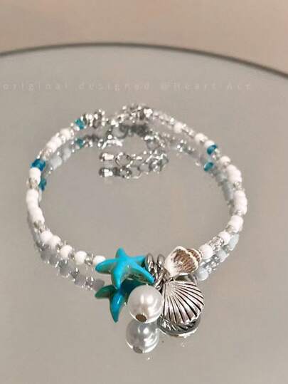 Women's Waterproof Beaded Beach Anklet, Adjustable Star Shell Pearl Anklet, Bohemian Style Summer Beach Party Gift - Multicolor - View 1
