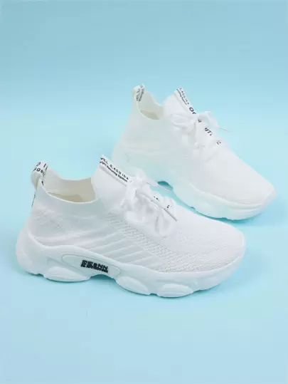 Women's White Road Running Shoes With Letter Pattern And Lace-Up Design Ideal For Yoga - White - View 1